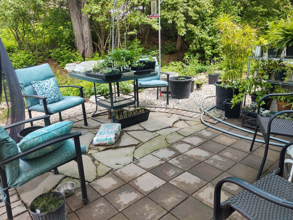 Studio work is at a standstill – for a small while ~smile. This occurs each spring as I transform our patio into a mini-garden of Eden and plant veges in the large garden.