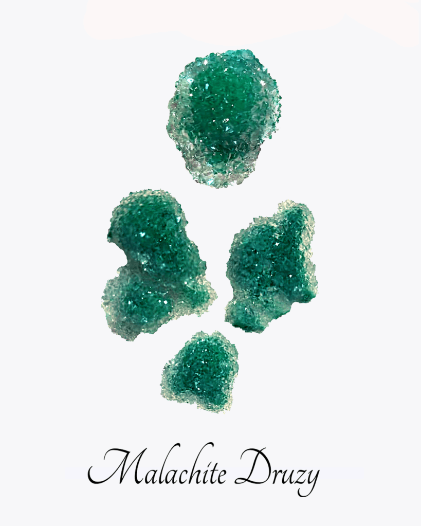 Have you ever come across a stone like this? It is both mineral and gemstone. These are solid druzy quartz crystals that have grown from a clear quartz base. The clear quartz has encapsulated botryoidal malachite. It’s crystalized malachite/copper carbonate hydroxide – all natural and extraordinary.